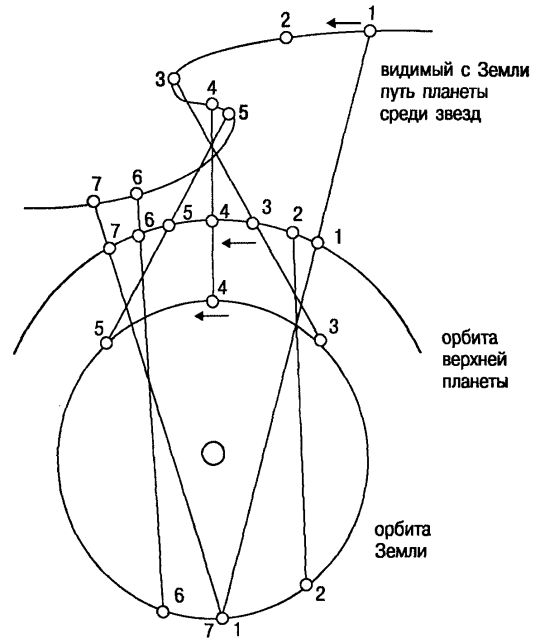Рис. 4.5. Объяснение попятного движения нижних планет