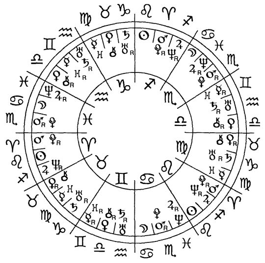 Ретроградное движение (R) – движение в направлении, обратном последовательности знаков Зодиака. Астрологически показывает на урок, который нам необходимо пройти, используя уже накопленный опыт. Вероятность события, связанного с этой планетой, возрастает в два-три раза (рис. 4.4, 4.5).