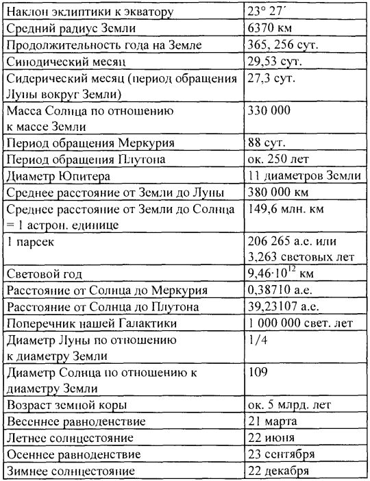 Таблица 2. Приближённые числовые значения наиболее важных величин, встречающихся в астрономии